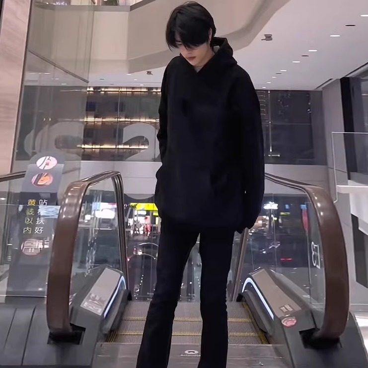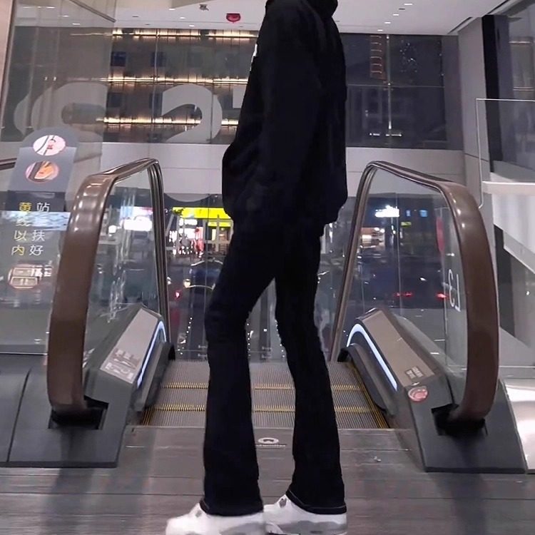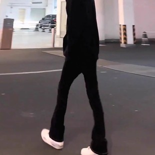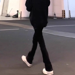 子 春秋男女直筒显瘦百搭长裤 美式 高街cleanfit黑色弯刀微喇牛仔裤