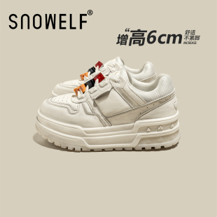 小白鞋 新款 女款 巨好看增高女鞋 小个子显高 厚底板鞋 真皮休闲鞋 春季