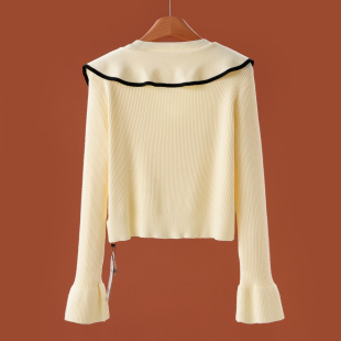 48%粘纤 针织衫 兰 V领套头荷叶边喇叭袖 171 春装 499