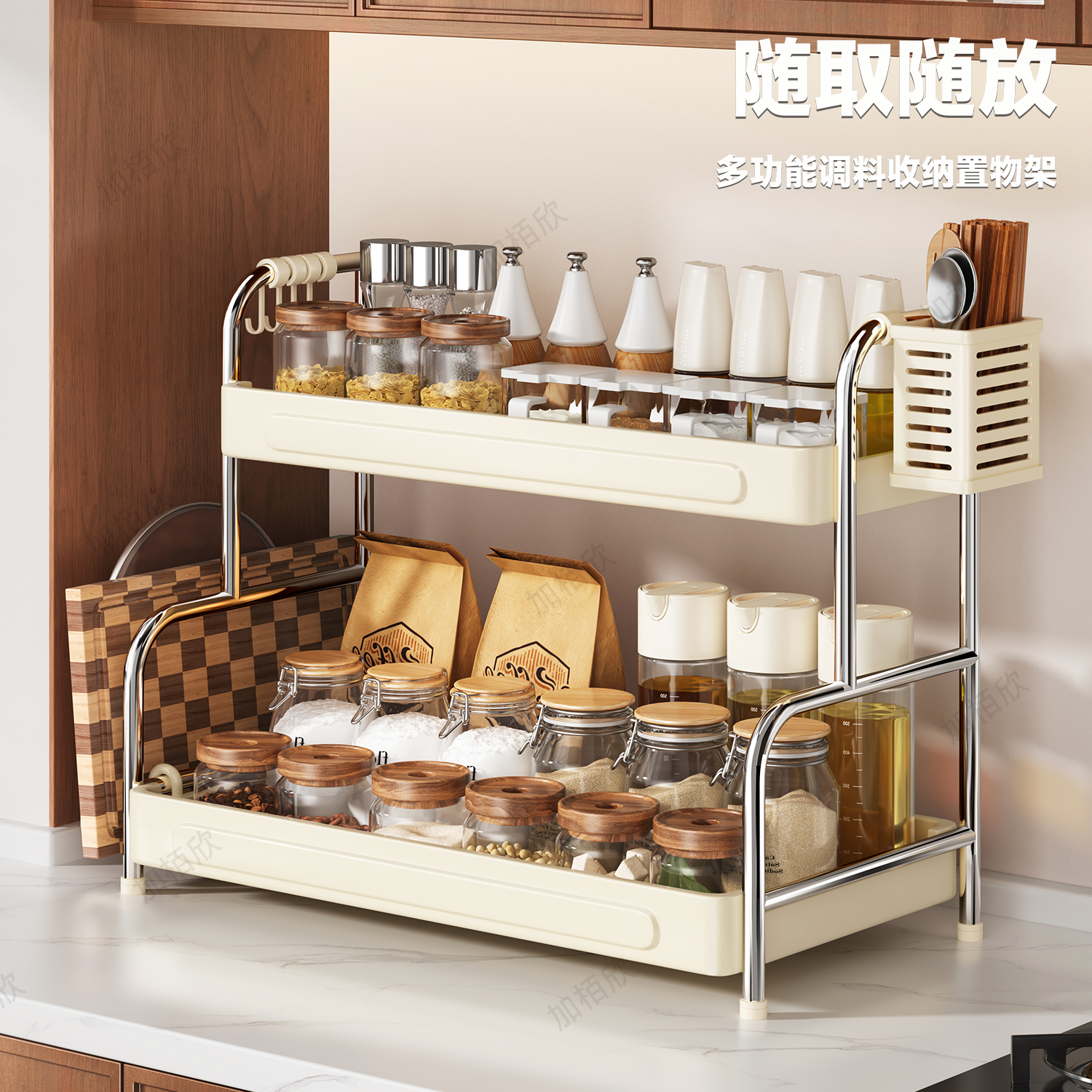 多层防尘收纳油盐酱醋调味料置物架 调料架台面抽拉式 新款 厨房窄款