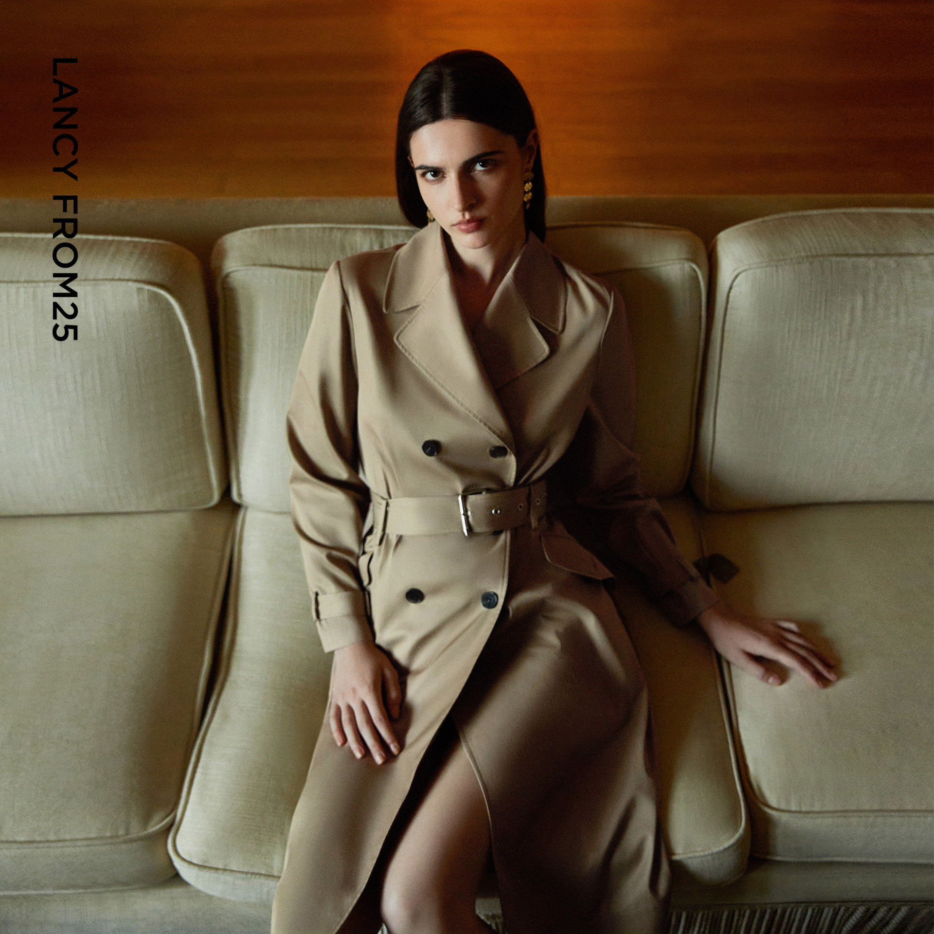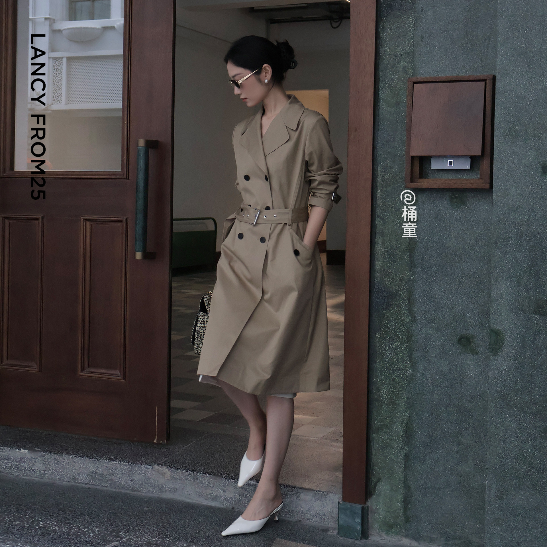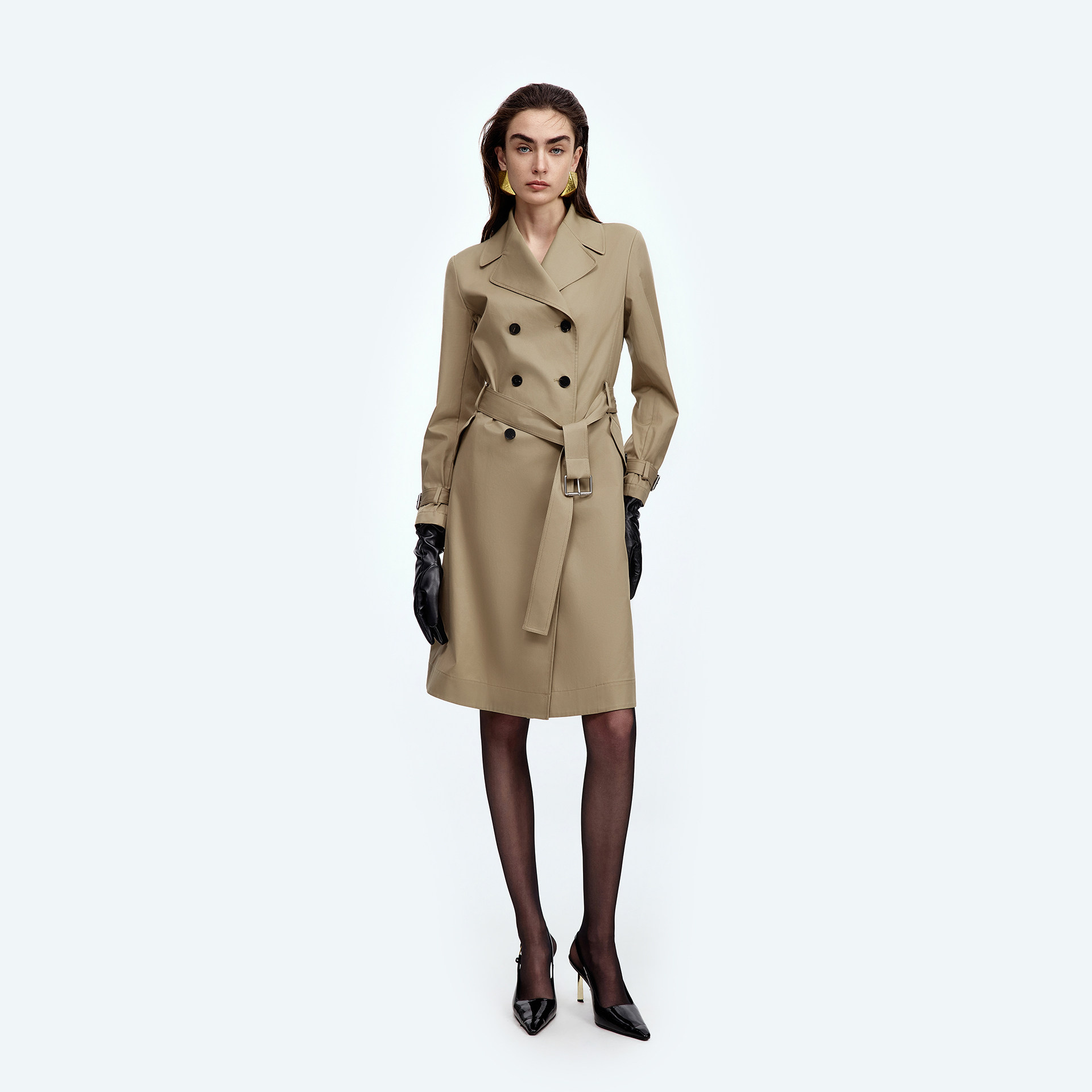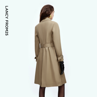 朗姿25纯棉双排扣束腰风衣高级气质外套春秋新款 高智衣橱