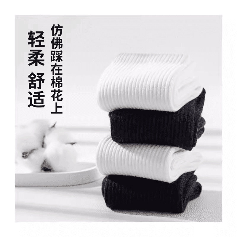 款 四季 短筒船袜黑白灰运动中长筒袜柔软 袜子男女同款 200针新疆棉