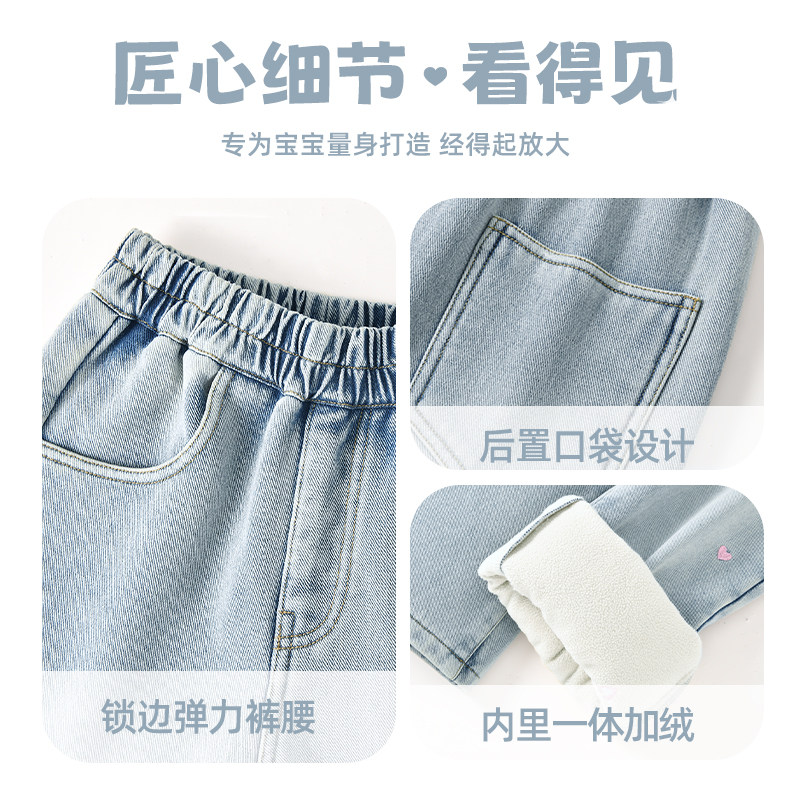 胖mm宽松显瘦梨型身材长裤 加绒加厚大码 子 女冬季 复古蓝微喇牛仔裤