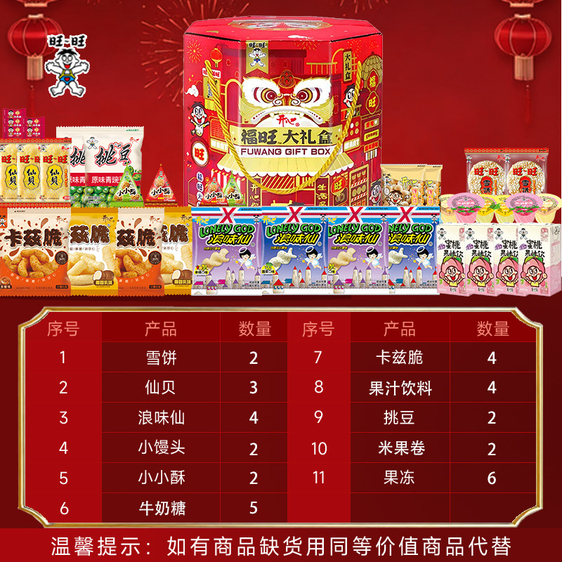 旺旺大礼盒零食928g豪华礼盒节日送礼年会礼物百日满月团购年货