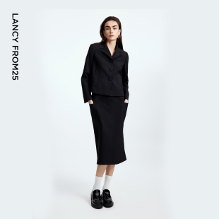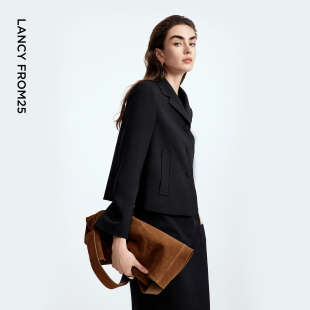 新款 朗姿黑色高级感简约短外套 半身裙翻领通勤上衣2025年秋季