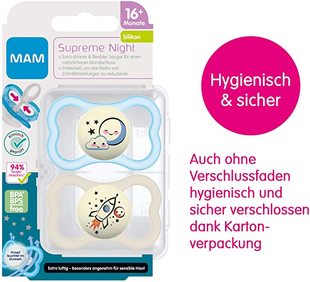 2支装 MAM美安萌SUPERME扁头防龅牙透气日夜硅胶安抚奶嘴宝宝 包邮