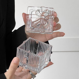 饰摆件 浮雕复古家用收纳盒装 少女心ins蝴蝶结心形玻璃首饰盒 欧式