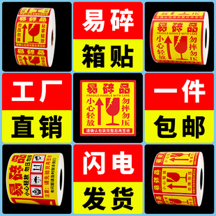 100大号标贴警示语贴不干胶防摔50 150玻璃勿压100 外箱150 易碎标签贴纸小心物品轻放定制快递物流包装