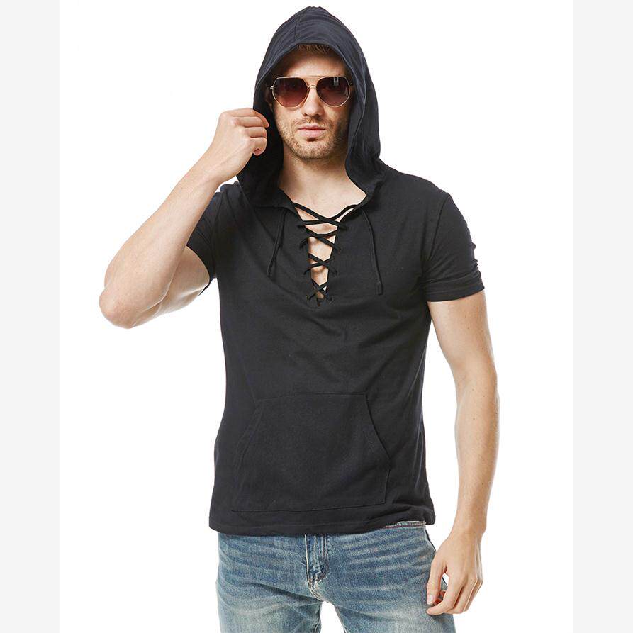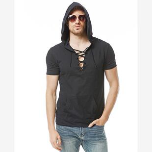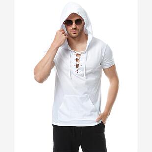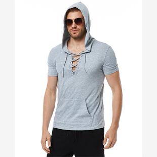 短袖 2023夏季 Men 全棉T恤衫 连帽休闲时尚 男式 新款 男装 外贸大码