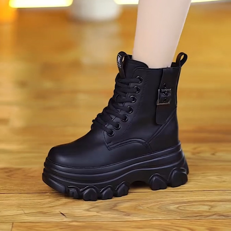 马丁靴长筒靴女2025新款 秋冬加绒厚底女靴子高筒骑士靴小个子长靴