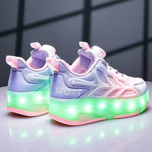 女童滑轮鞋 中大童轮子溜冰鞋 儿童亮闪灯鞋 新款 男 2025秋冬季 暴走鞋