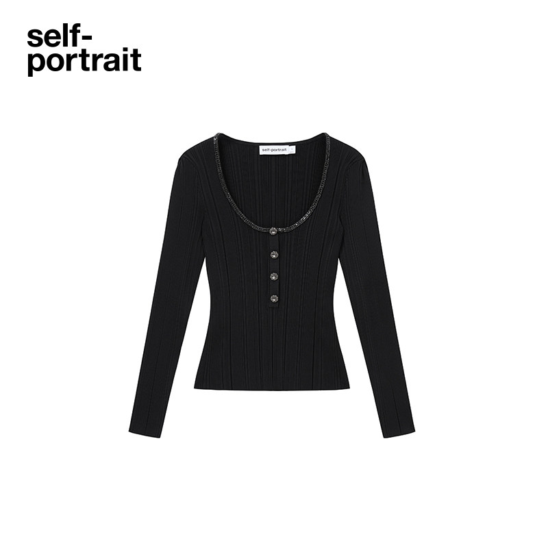 黑钻饰气质U领长袖 秋冬经典 针织打底上衣 portrait self