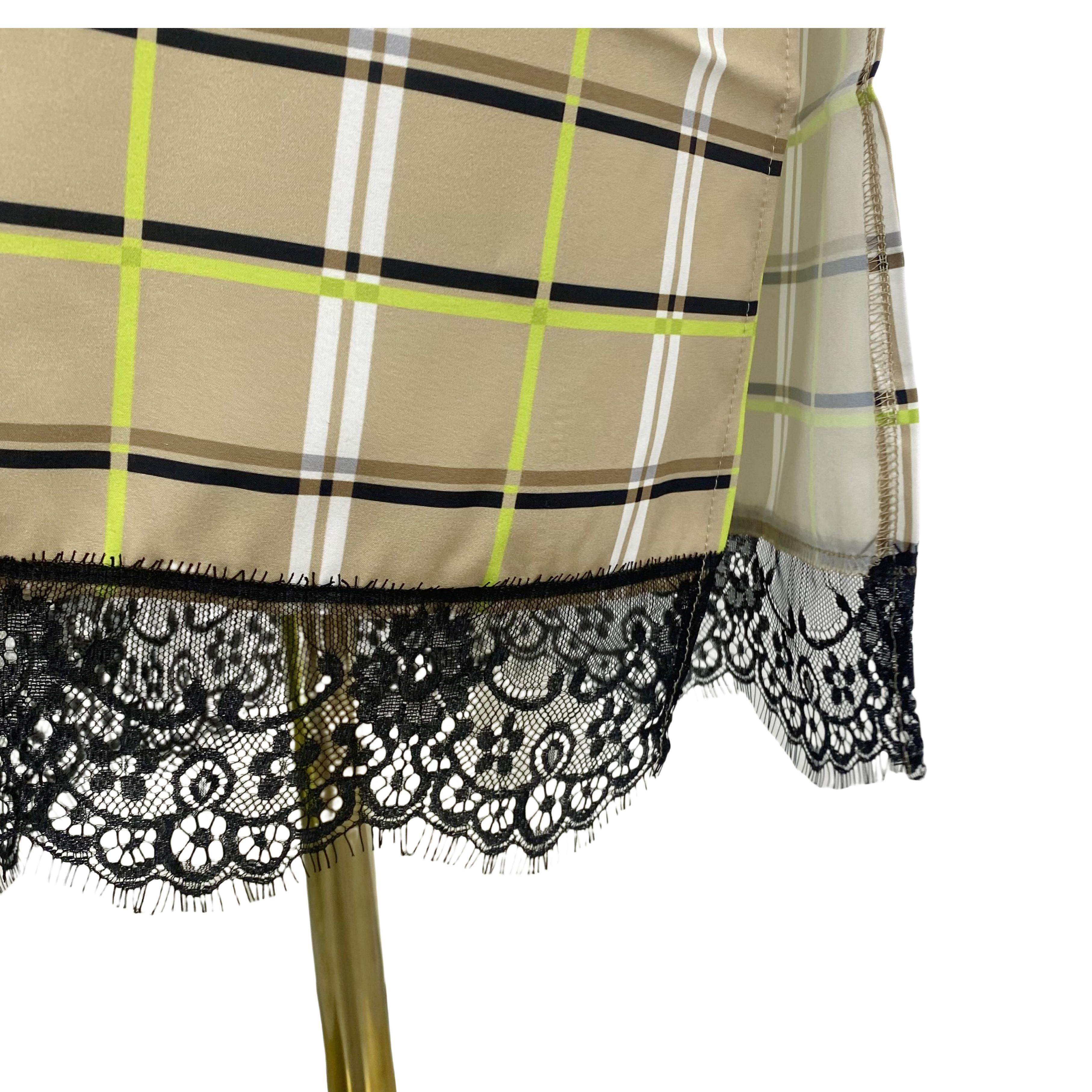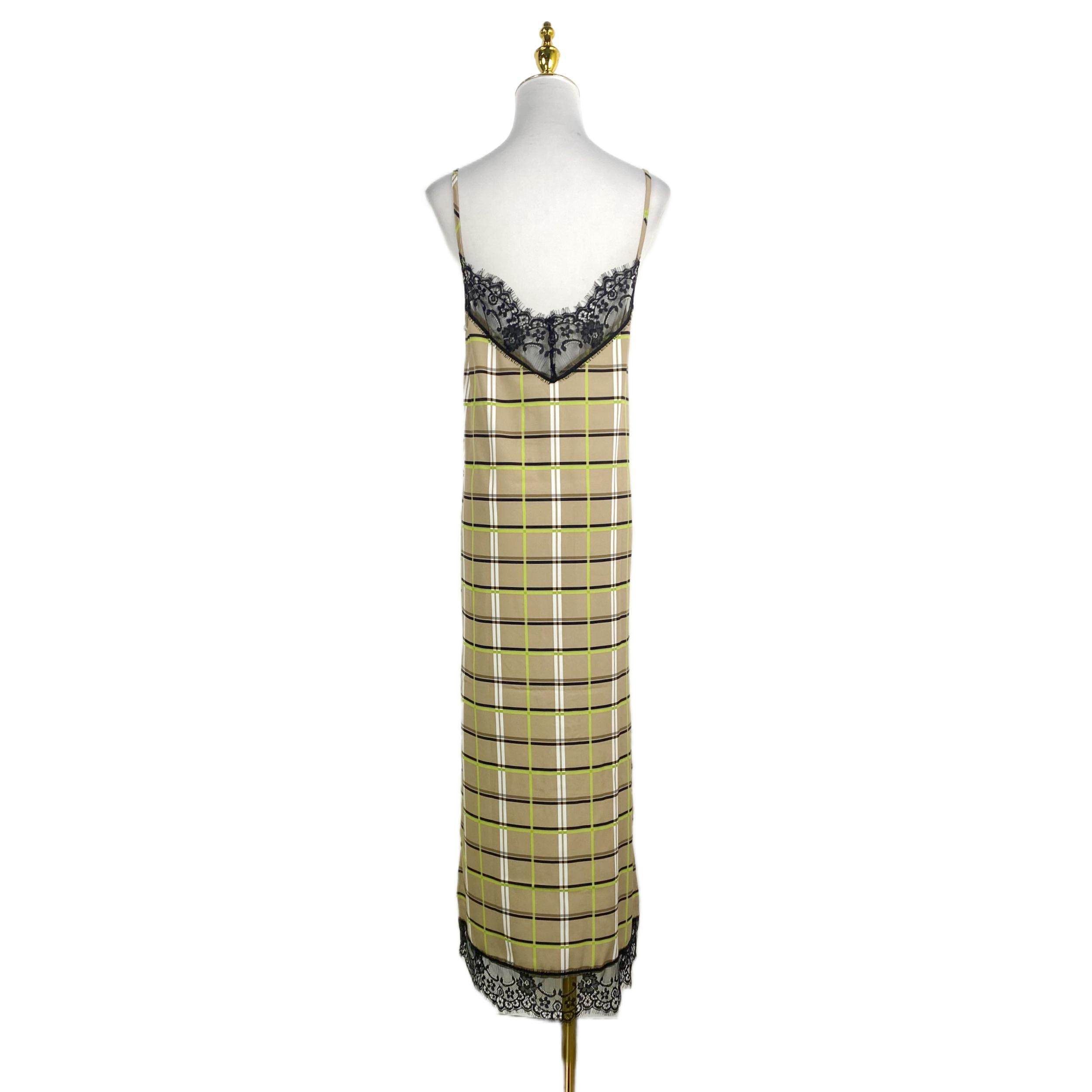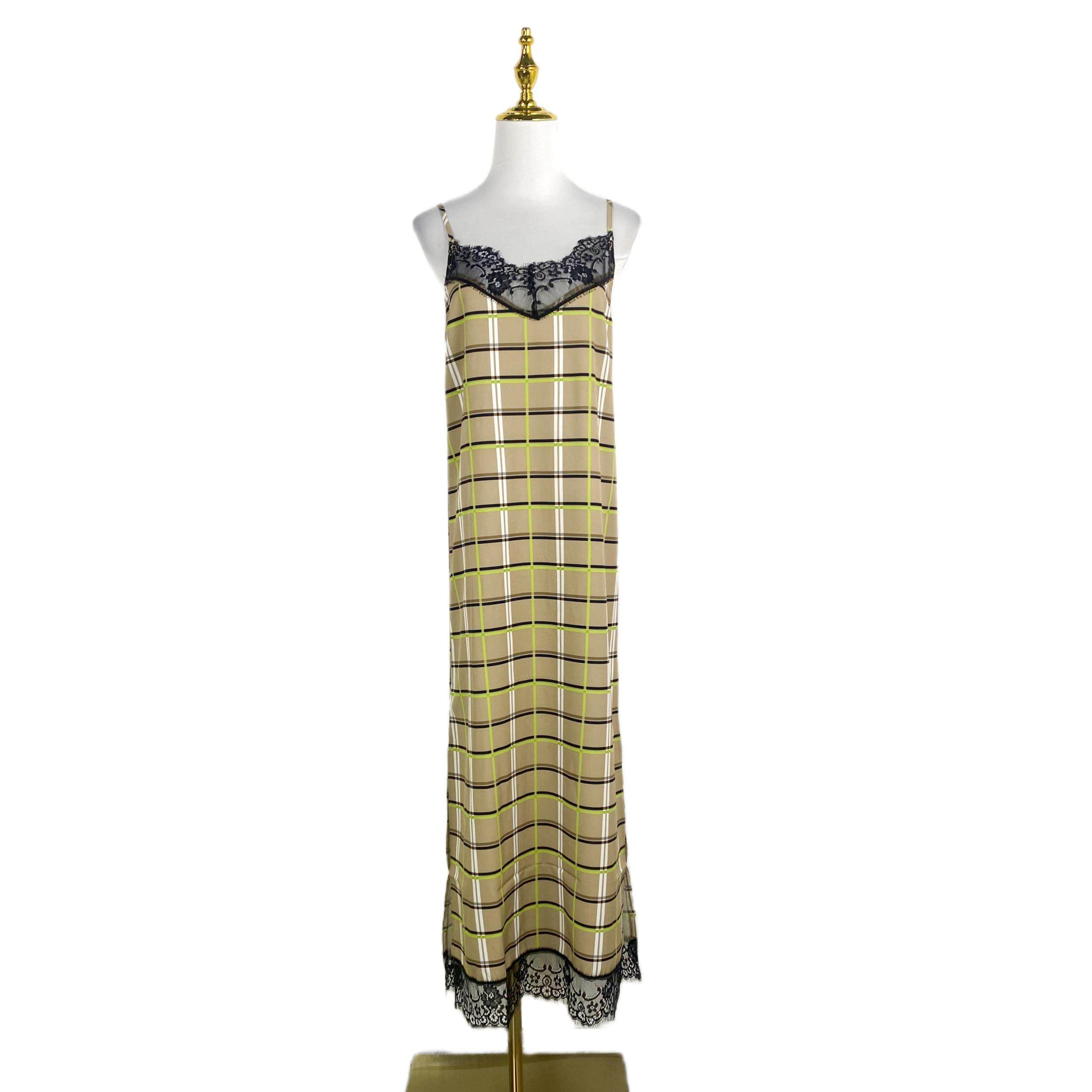 蕾丝拼接V领吊带裙时尚 女装 格子两侧开叉连衣裙 新款 A3108夏季