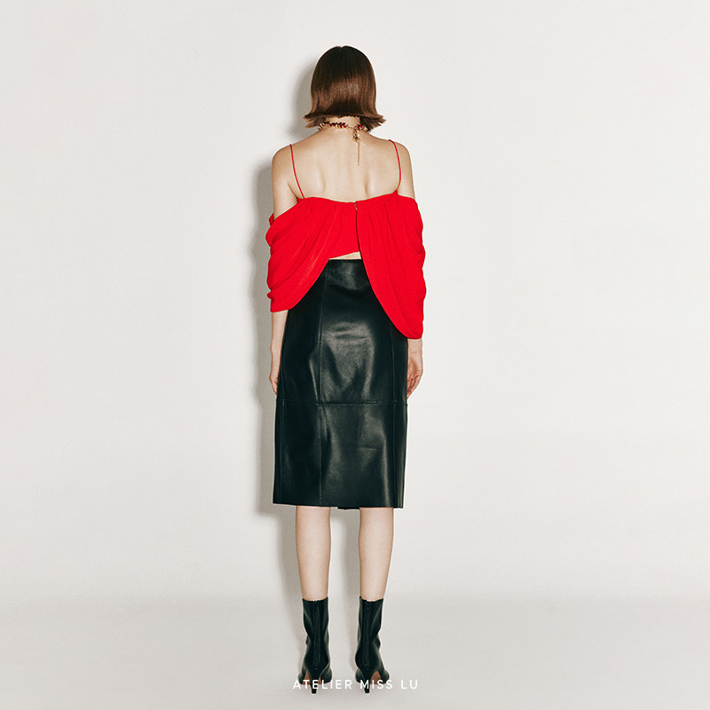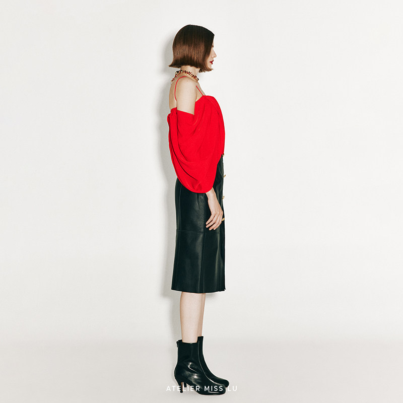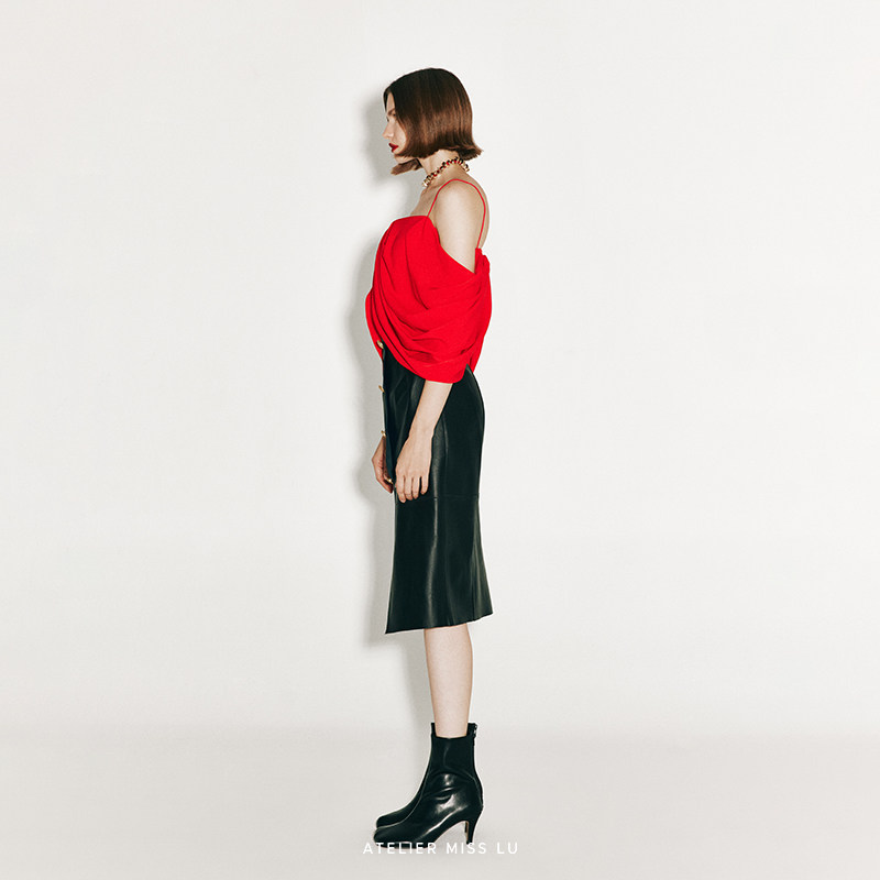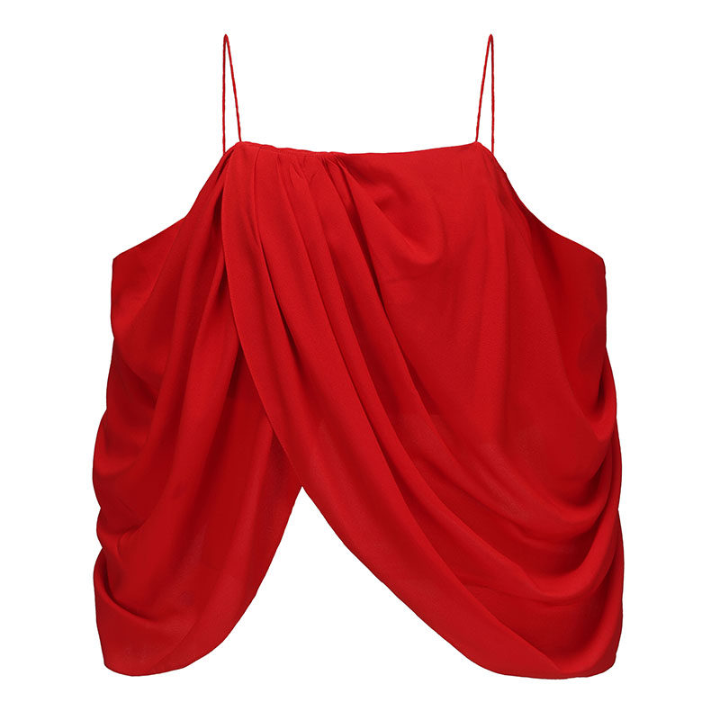 AtelierMissLu 2024秋冬不规则垂褶设计露肩吊带上衣 未闻花名