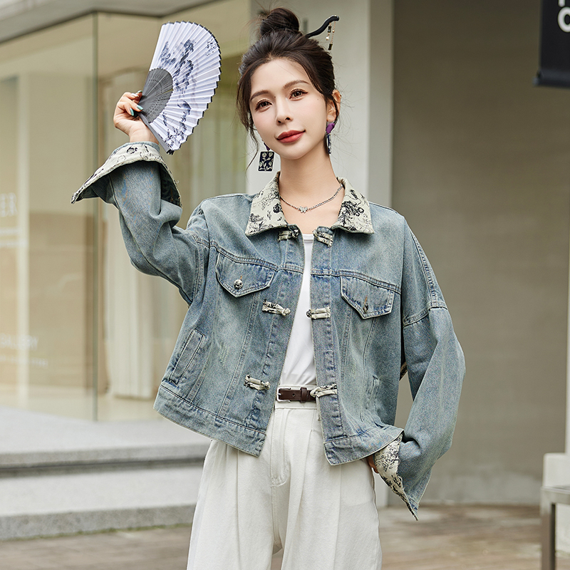 水墨画拼接新中式 国风设计感别致夹克上衣 牛仔外套女春秋2025新款