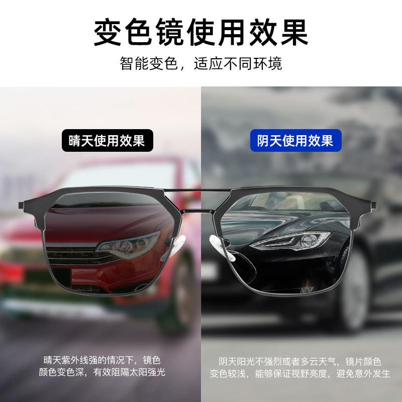 感光男女防蓝光辐射抗疲劳平光眼镜半框护眼防近视无度数变色两用