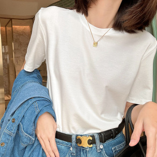 2026新款 T恤女打底上衣垂感百搭圆领体恤 冰丝冰感高端白色短袖