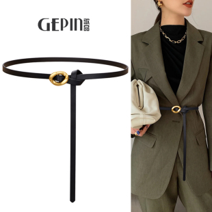 小皮带 配西装 真皮细腰带女士打结装 饰连衣裙子收腰高级感2026新款