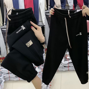 百搭显瘦小脚哈伦裤 秋冬季 女宽松刺绣束脚运动裤 加绒休闲卫裤 新款