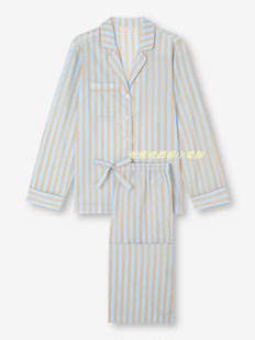 Rose英国代购 条纹夏款 女士纯棉睡衣套装 领长袖 家居服衬衫 Derek
