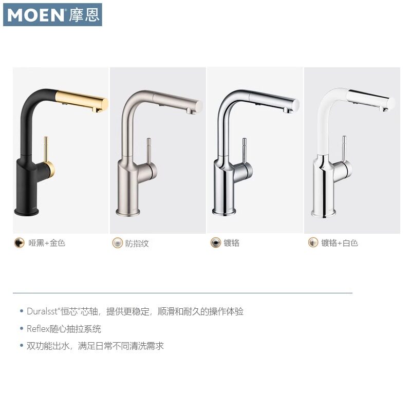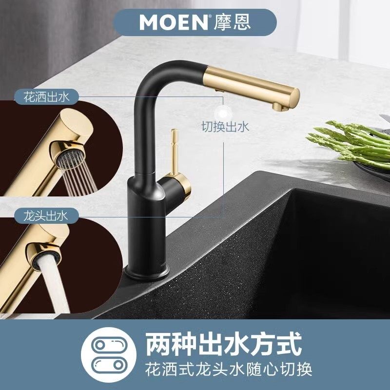 政府补贴摩恩洗菜盆厨房水龙头可抽拉式 冷热伸缩万向旋转防溅专用