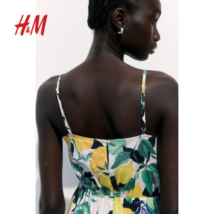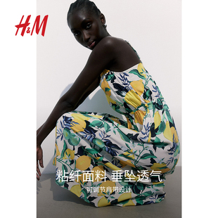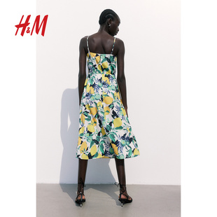 HM女装 气质度假风清新中长植物印花吊带长裙1225346 连衣裙冬季