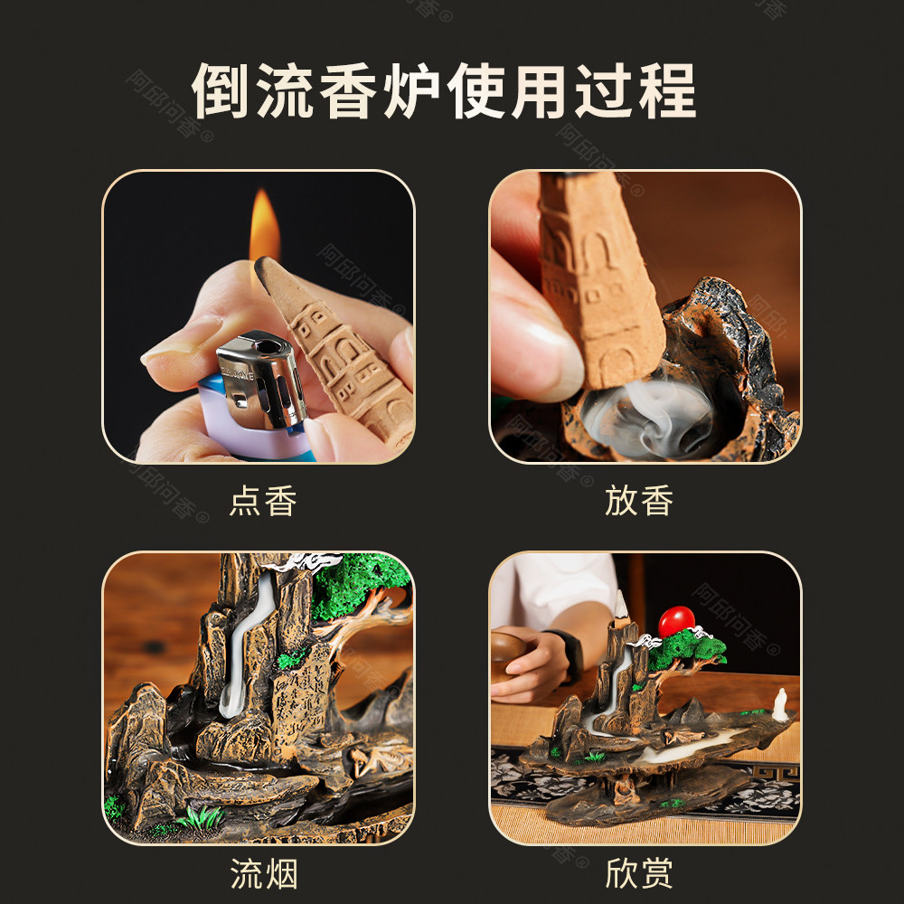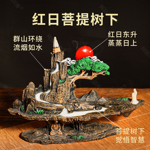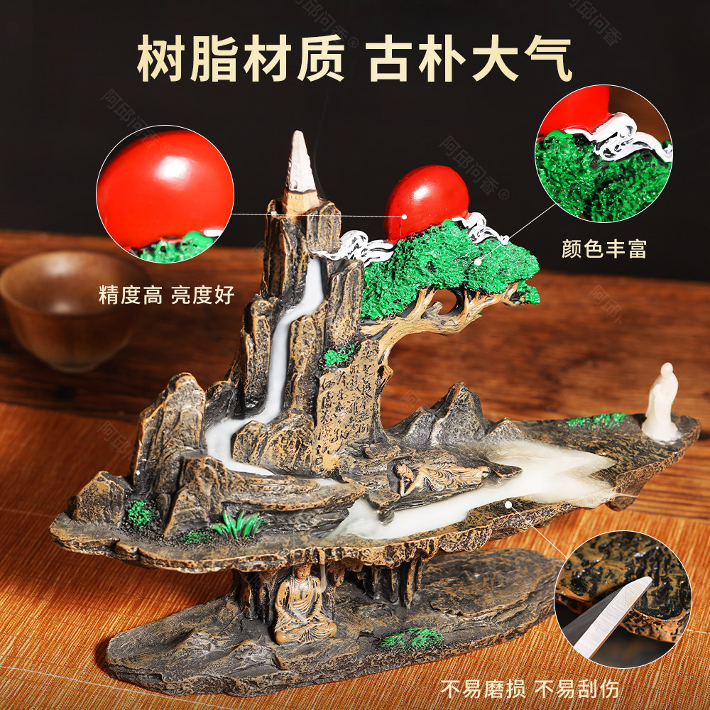 倒流香炉家用室内客厅玄关倒流香檀香沉香熏香炉树脂仿古禅意摆件