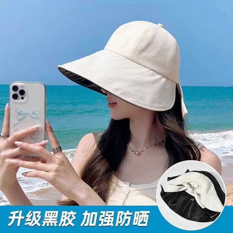 蝴蝶结渔夫帽黑胶防晒帽女士春夏季 防紫外线遮脸大帽檐遮阳帽子女