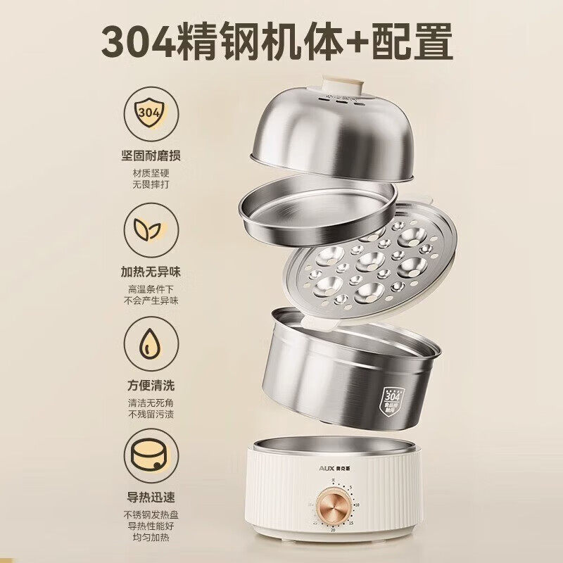 奥克斯煮蛋器304不锈钢定时蒸蛋器学生早餐机神器煮蛋机自动断电