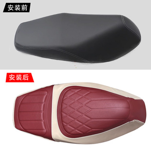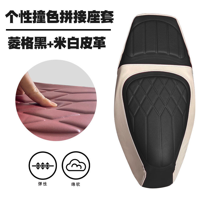 适用于五羊本田NPF125摩托车复古拼色菱形皮革座垫套防水减震座套