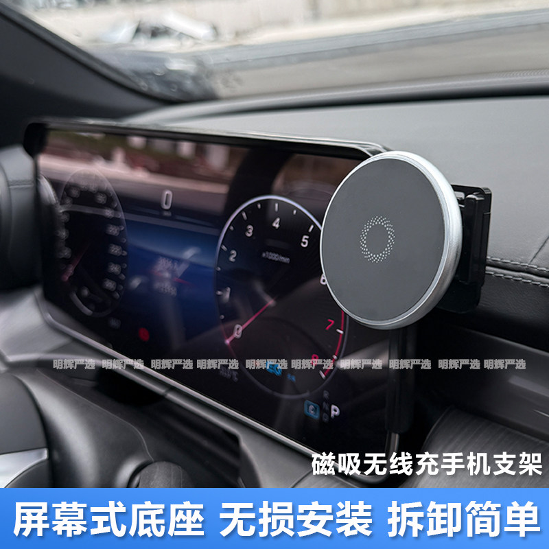 适用奔驰车载手机支架新C级glc300lE级A级glegla磁吸无线充电导航