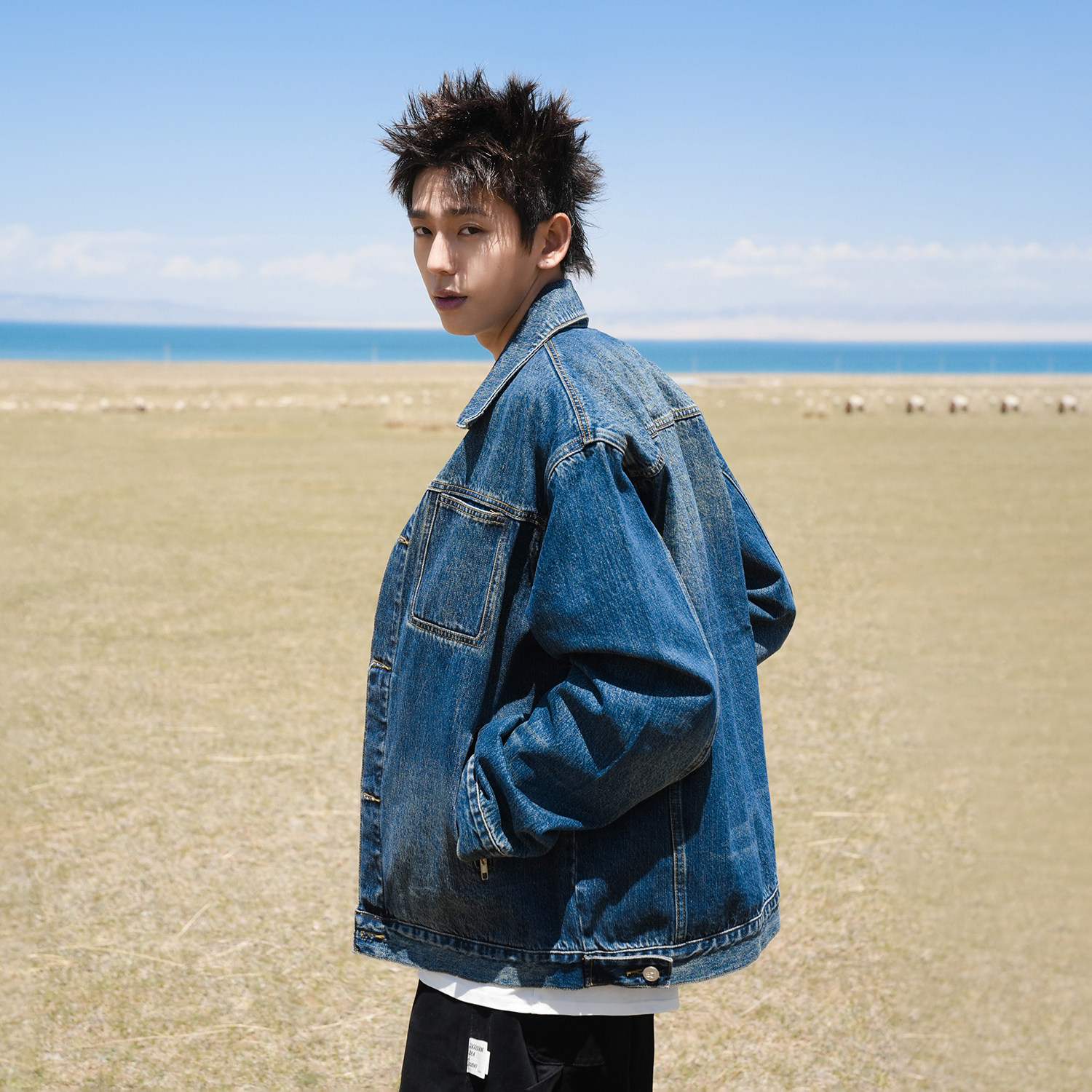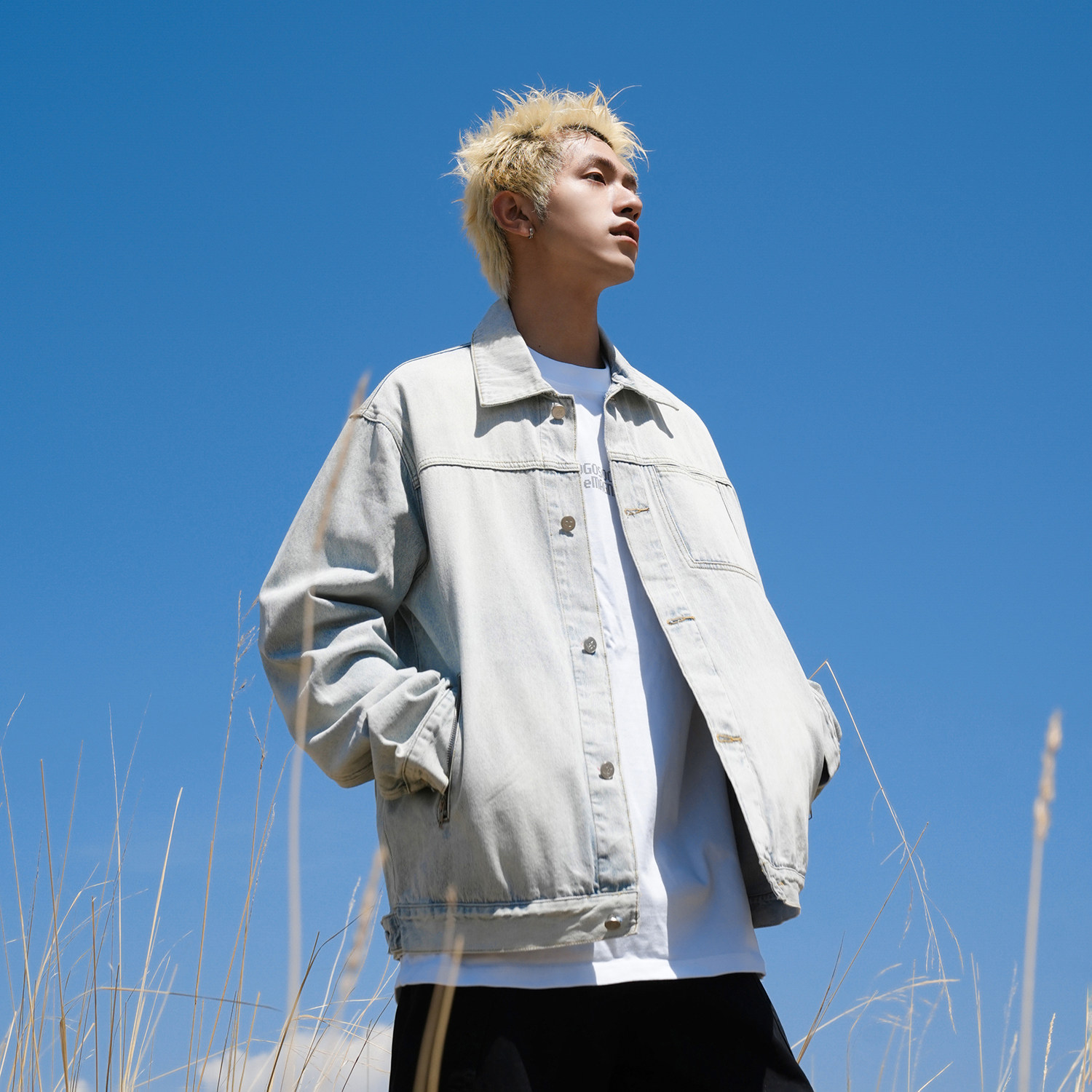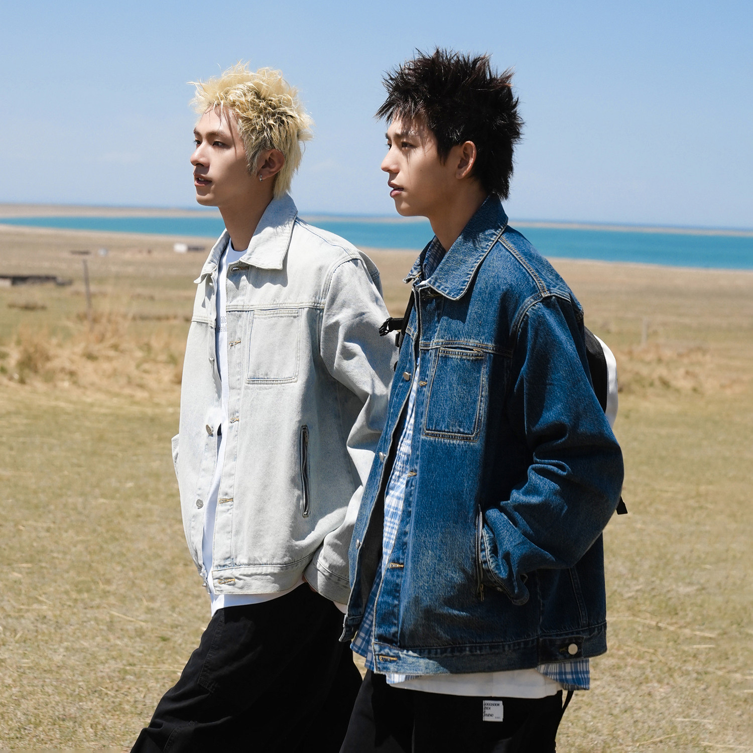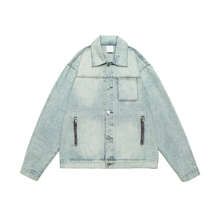 美式 复古设计感原色牛仔外套宽松百搭正肩口袋cleanfit夹克上衣男