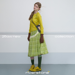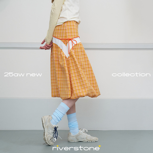 a字伞裙春秋2025新款 毛呢格子半身裙子女秋冬新款 复古高腰中长款