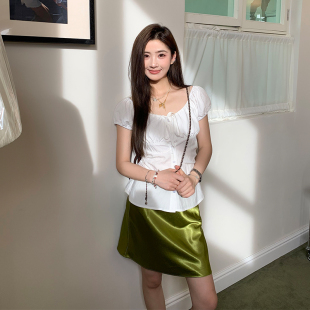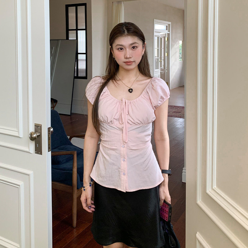 收腰显瘦百搭上衣 女夏季 橘子树在哪儿纯欲风短袖 衬衫