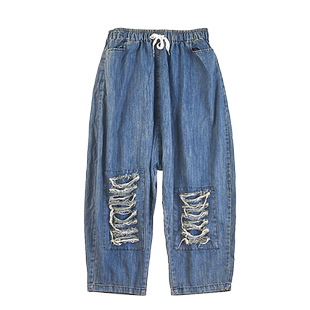 女H83230夏秋做旧文艺九分老爹裤 胖MM宽松显瘦破洞牛仔裤 大码 新款