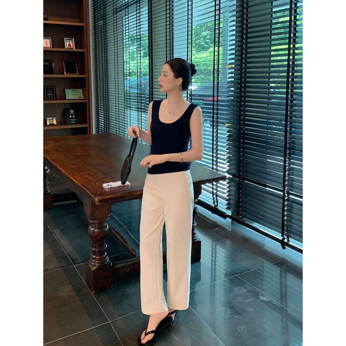 Lin 直筒九分裤 R0W风极简 女高级感气质修身 白色通勤休闲裤 Maven