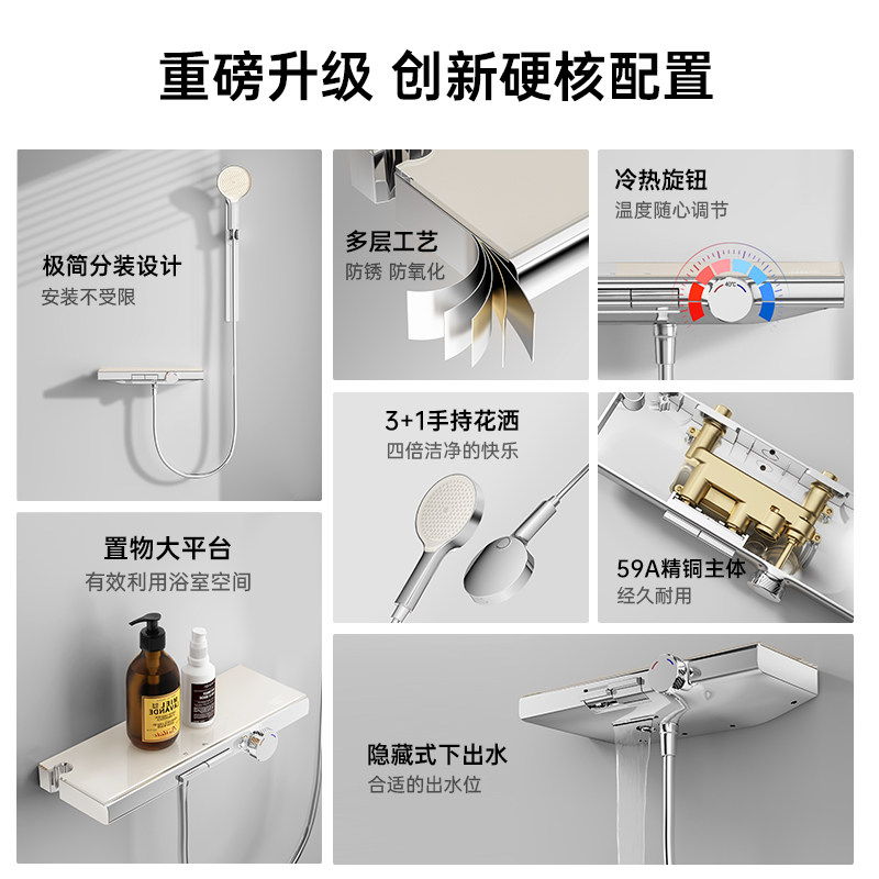 安装 政府补贴wocam沃咖A20电镀奶白色简易恒温淋浴花洒套装 分体式
