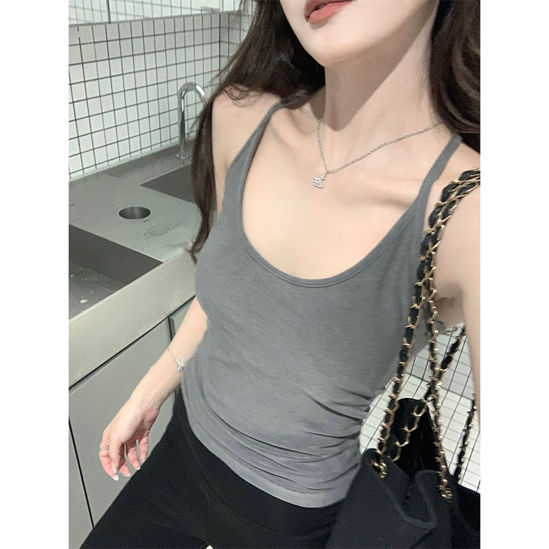 百搭简约气质无袖 修身 上衣 带胸垫小吊带背心女v领短款 pusumede