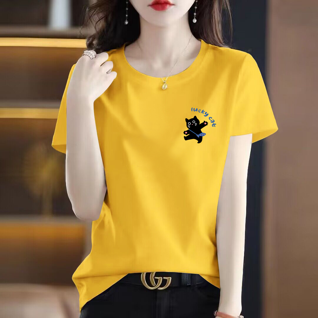 显瘦印花大码 洋气短袖 上衣潮 时尚 清仓出口纯棉100%圆领t恤女夏季