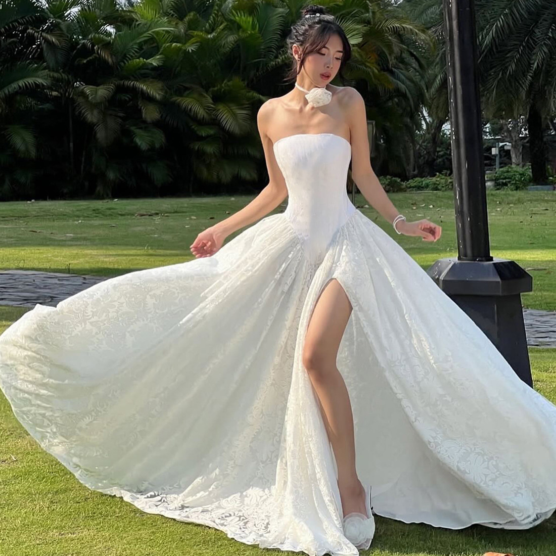 时髦超仙气质开叉长裙潮 森系氛围感仙女抹胸连衣裙女 WEIRD PUSS