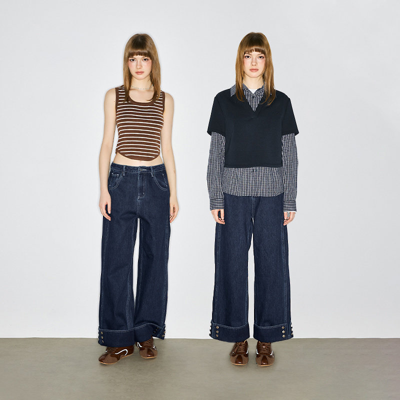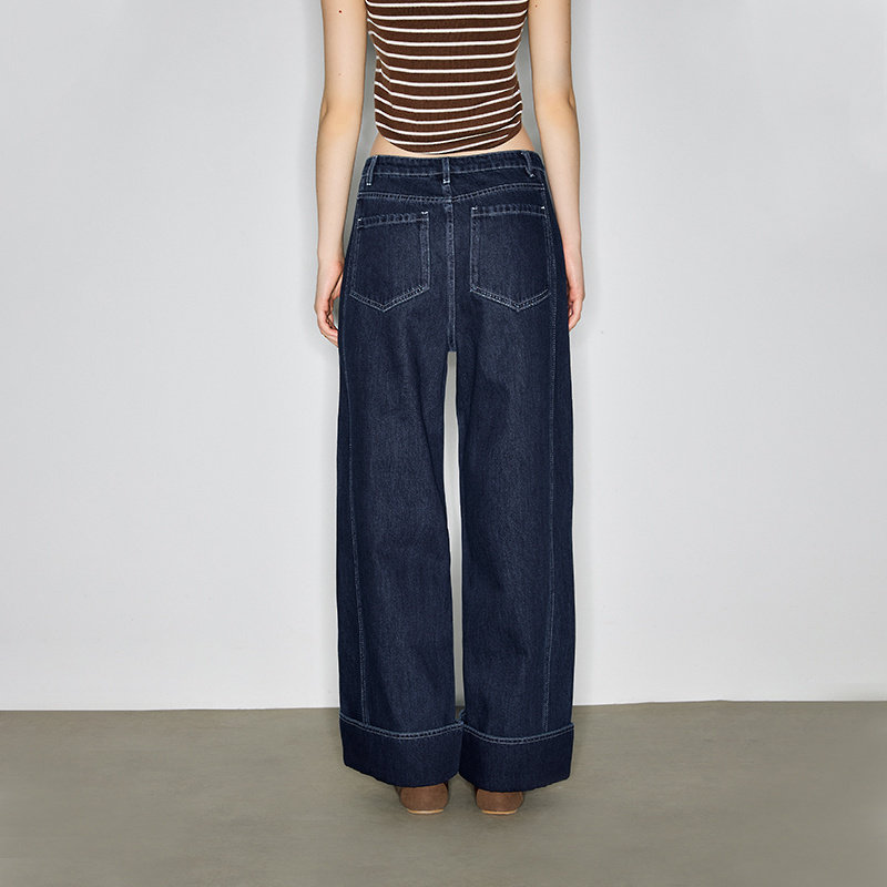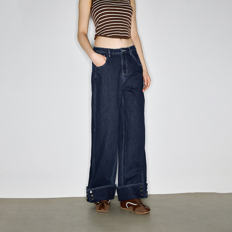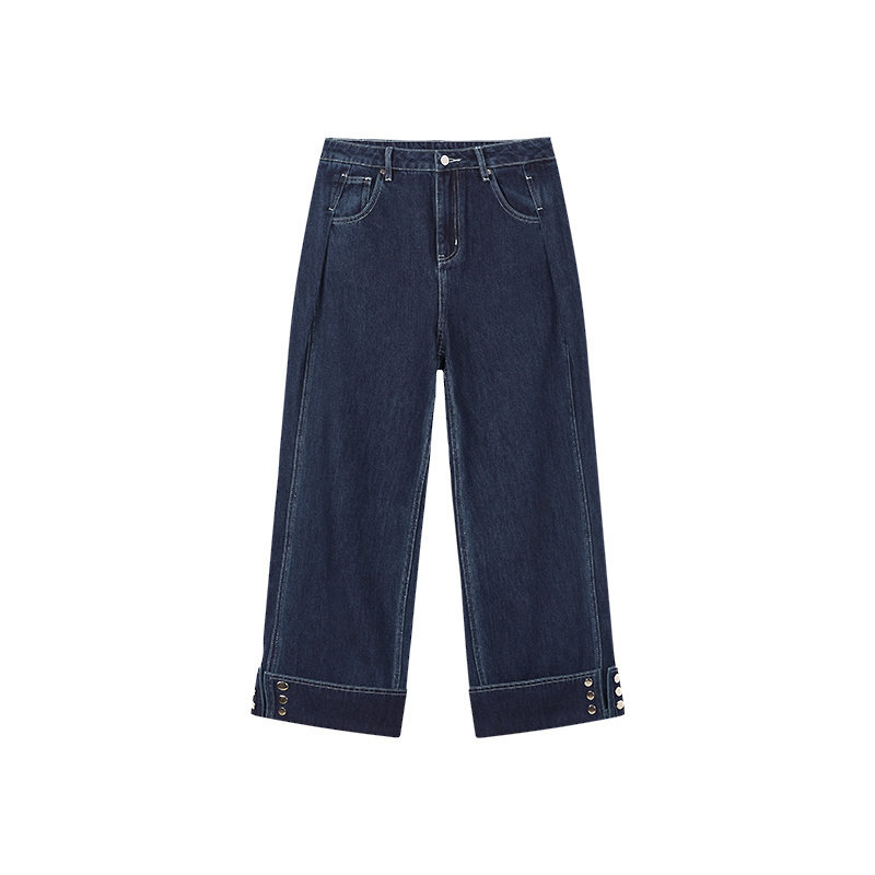蓝色裤 新款 脚设计感直筒裤 子显瘦2026春季 牛仔裤 Jamor加墨时尚