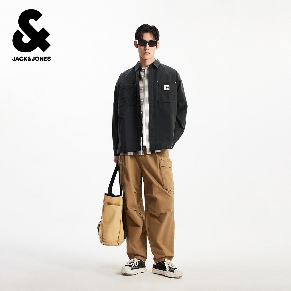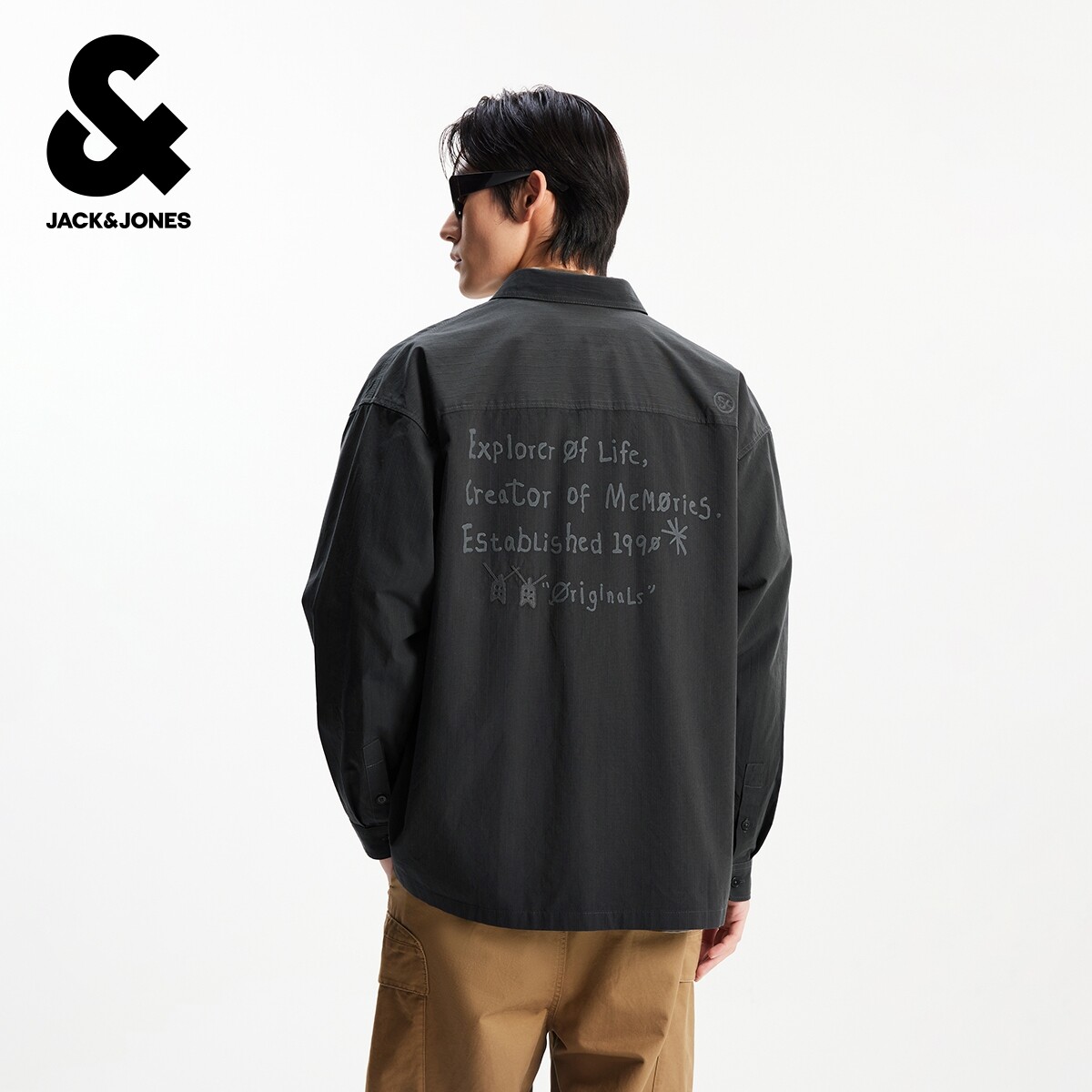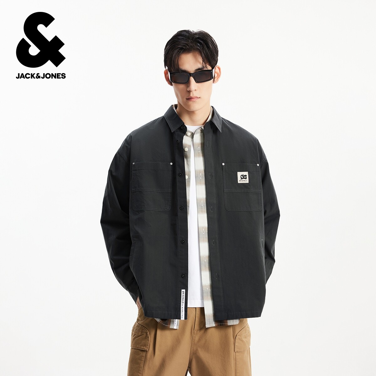 春季 百搭简约中性翻领纯棉宽松长袖 新款 时尚 上衣 衬衫 杰克琼斯男装
