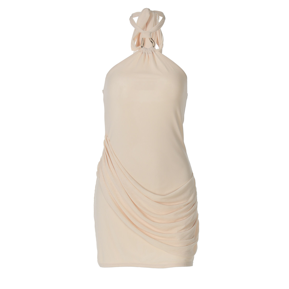 新款 连衣裙2026夏季 性感包臀短裙女 无袖 纯欲风网纱拼接纯色挂脖式