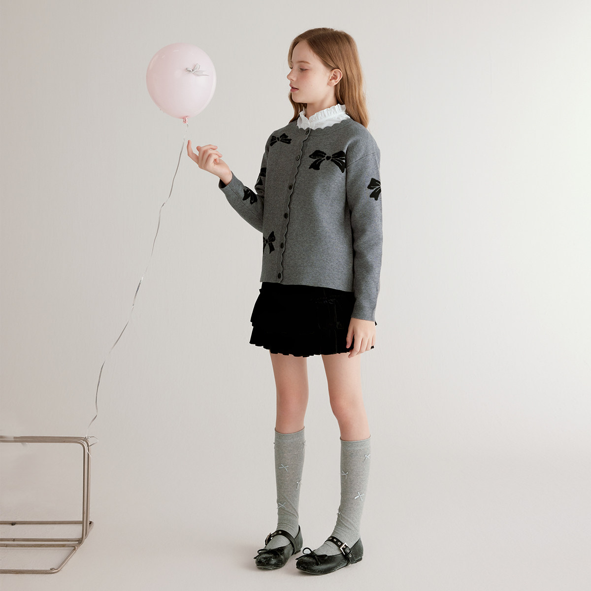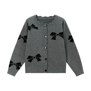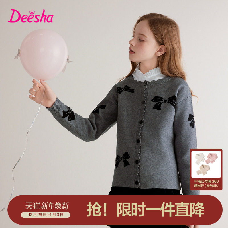 女孩儿童时尚 笛莎官方旗舰童装 新款 春秋季 蝴蝶结外套 女童针织开衫