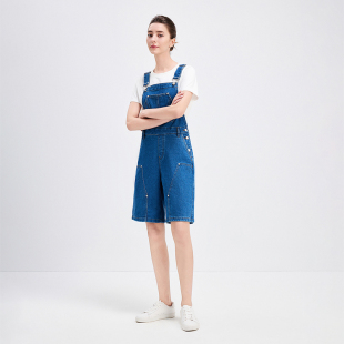 蓝色休闲五分背带裤 Navigare意大利小帆船牛仔连体裤 女夏季