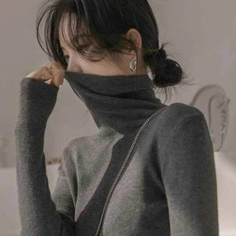 加厚绒衫 轻奢高档毛衫 堆堆领高领打底毛衣修身 百搭针织衫 秋冬新款