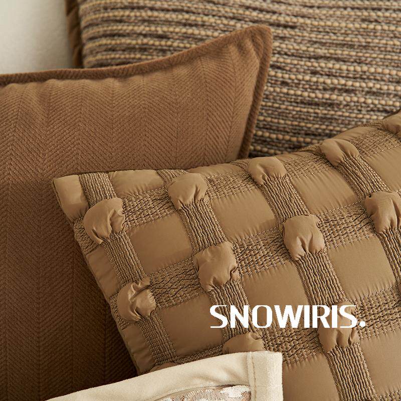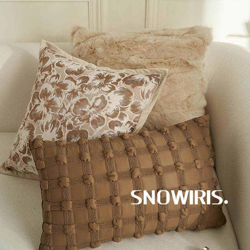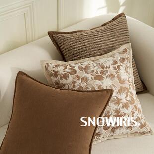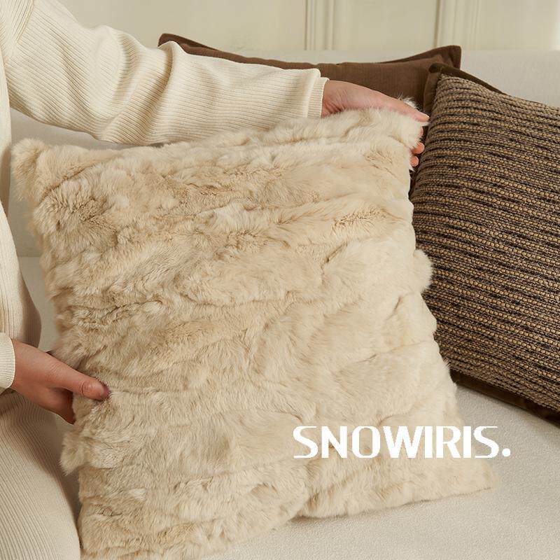 轻奢高级感抱枕套獭兔毛沙发靠垫中古褐样板间装 饰腰靠百搭靠枕套