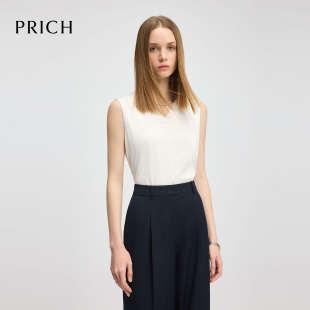 无袖 PRICH时尚 V领衬衫 夏季 内搭女 光泽感上衣西装 缎面