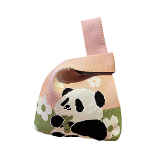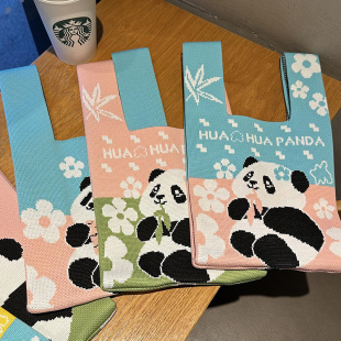 熊猫针织包成都网红爷爷生日伴手礼袋编织手拎马甲背心包宽窄巷子