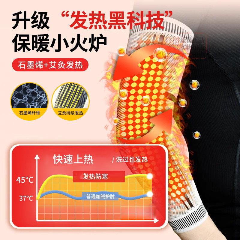 艾草护肘关节套发热石墨烯护胳膊手臂套保暖加热手套袖 护腕女网球
